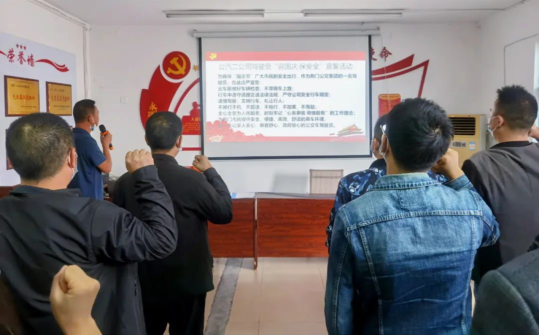 為進(jìn)一步強(qiáng)化公交駕駛員“迎國(guó)慶、防風(fēng)險(xiǎn)、遏事故、保安全”及優(yōu)質(zhì)服務(wù)的意識(shí),9月25日上午,以節(jié)前駕駛員安全服務(wù)培訓(xùn)活動(dòng)為契機(jī),市公交集團(tuán)組織百余名駕駛員代表,在公汽二公司會(huì)議室開展“安全行車、文明服務(wù)、迎接國(guó)慶”宣誓活動(dòng)。