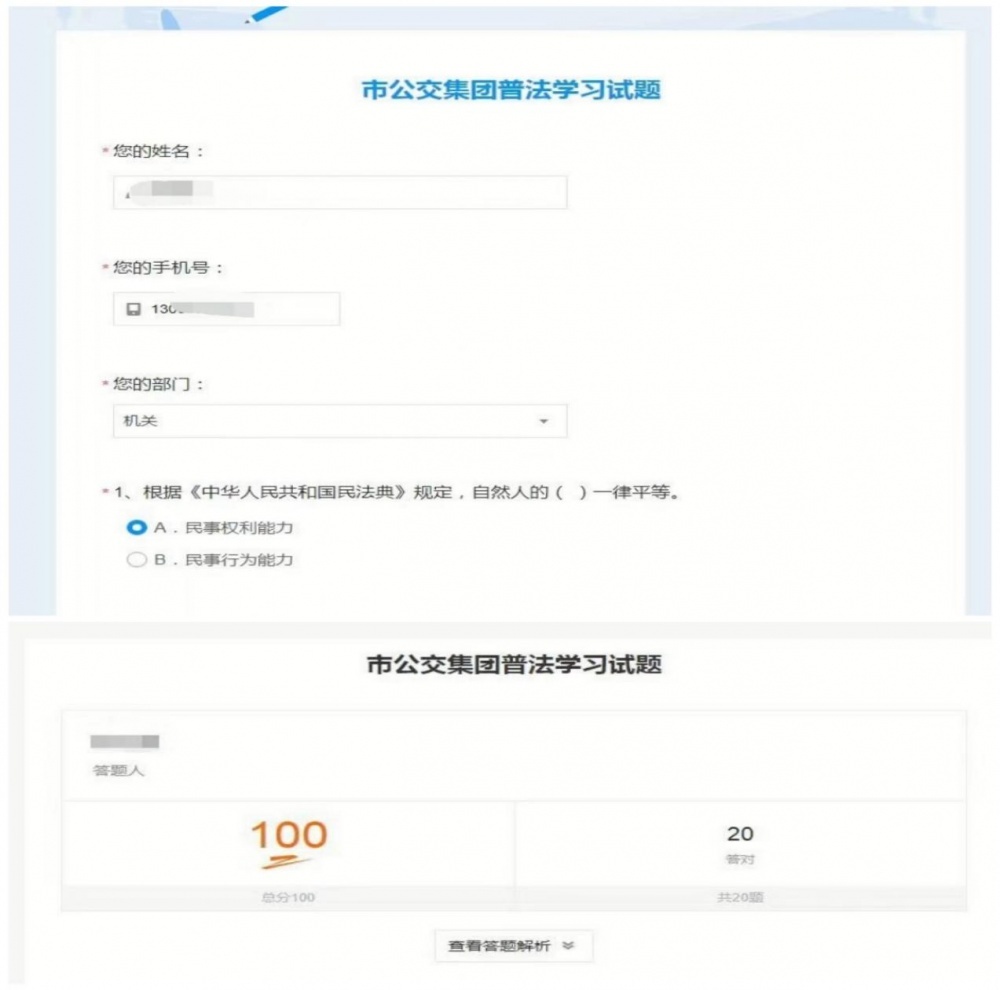 本次活動結(jié)束后,通過后臺數(shù)據(jù)統(tǒng)計,有效參與率為79%,其中,定制公交公司、公交廣告公司和公交汽修公司參與率為100%。本次競賽活動的平均正確率為78.3%,離目標(biāo)要求還有一段距離,以后還要繼續(xù)加大民法典宣傳學(xué)習(xí),提高全員法律知識水平。(通訊員:張克龍)