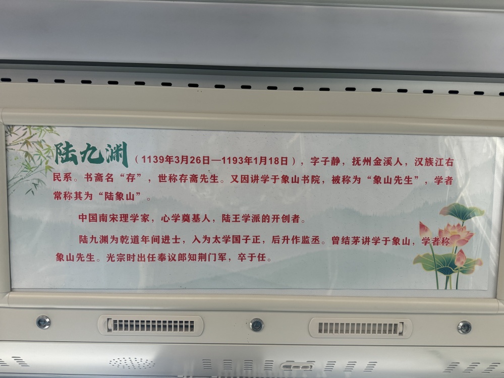 “陸九淵號”不僅僅是一條公交線路,更是一個移動文化陣地。當(dāng)你踏上這趟公交車,你會被駕駛員的熱情服務(wù)所感染,他們微笑著迎接每一位乘客,以優(yōu)質(zhì)的服務(wù)彰顯著荊門的文化精神和城市溫度。車輛全部采用新能源公交車,不僅環(huán)保節(jié)能,行駛起來也更為平穩(wěn),同時,在車輛內(nèi)外裝飾以及“進(jìn)站、出站、溫馨提示”等場景語音播報融入陸九淵相關(guān)元素,讓乘客潛移默化的加深對荊門文化的認(rèn)識和理解。