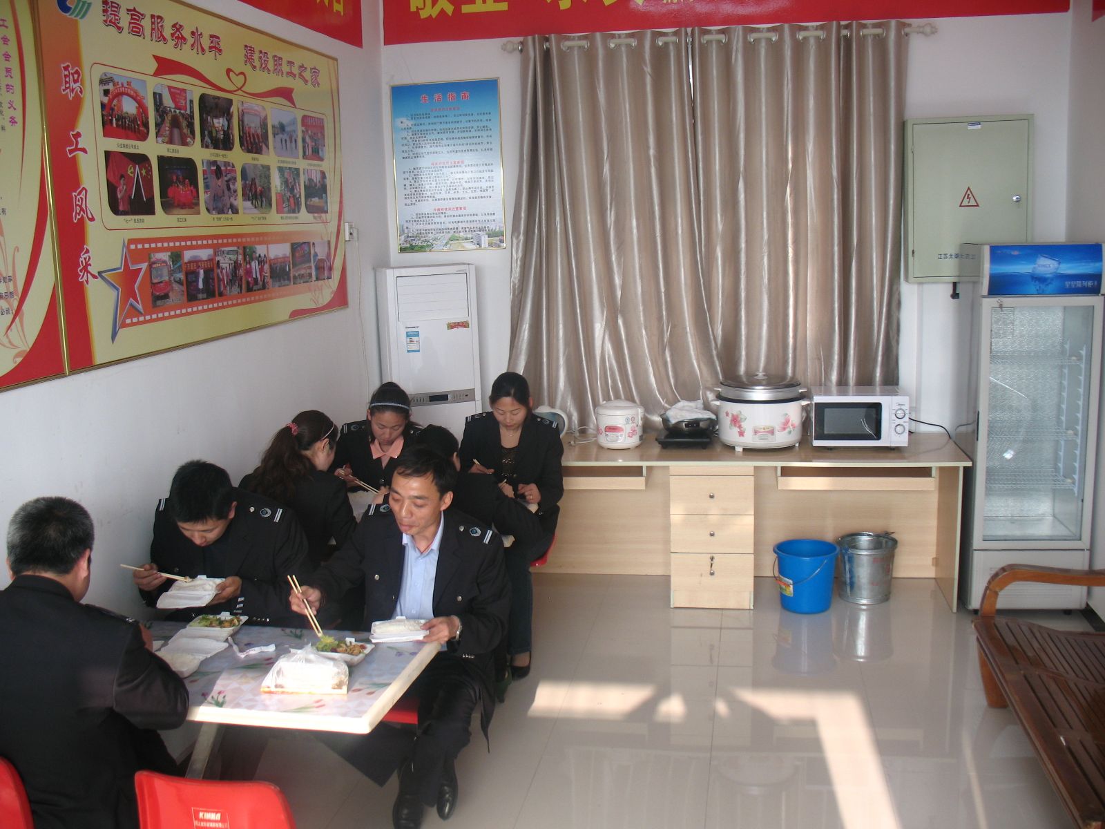 為了給駕駛員創(chuàng)造良好的工作生活環(huán)境,公司出資購買了保鮮柜、微波爐、開水壺、桌椅、空調(diào)等日常生活設(shè)施,使駕駛員能吃上熱飯,喝上熱茶,盡最大努力幫助、呵護(hù)一線員工,真正的為他們帶去一絲關(guān)懷和溫暖。為方便市民乘車,公司還要求所有調(diào)度室、站務(wù)室免費對乘客開放,為市民提供咨詢服務(wù),解決乘客飲水難、入廁難等便民之需。